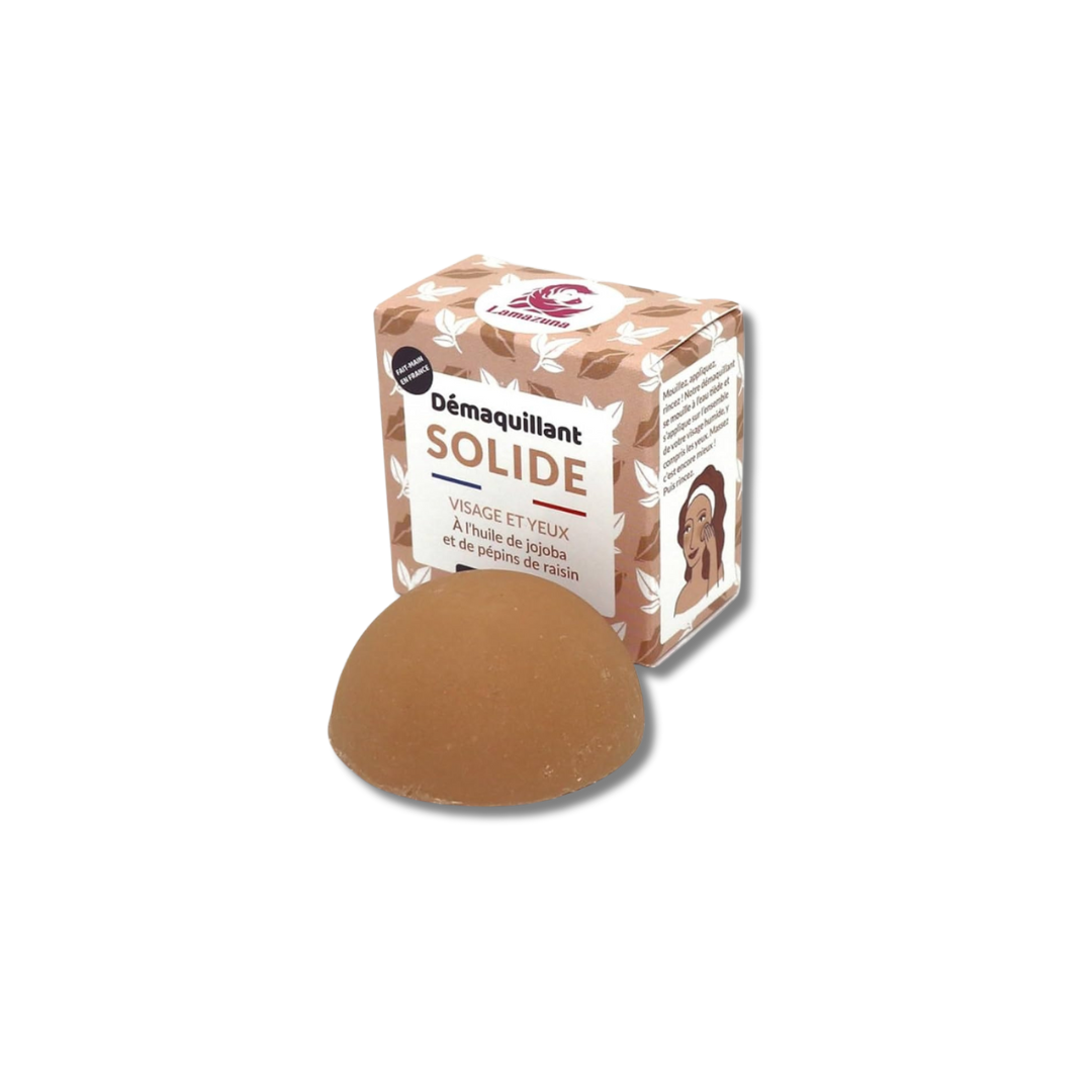 Démaquillant solide de Lamazuna, facile à emporter partout avec vous avec son format voyage, un véritable soin démaquillant zéro déchet aux huiles végétales et au beurre de karité pour le visage et les yeux qui éliminent les maquillages les plus tenaces tout en prenant soin des zones sensibles tels que les cils et les paupières.