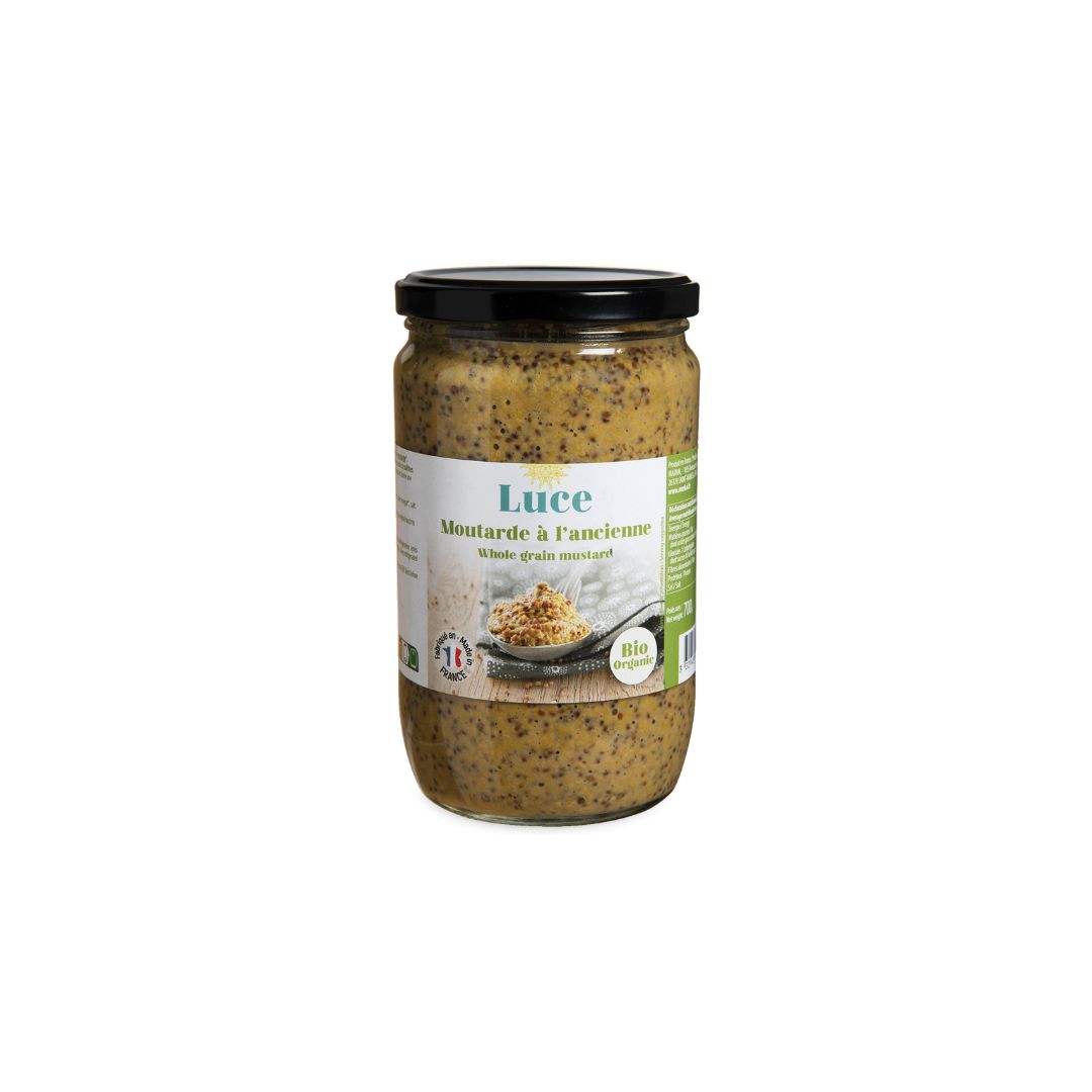 Notre moutarde à lancienne est fabriquée à partir d'un mélange de graines brunes biologiques grossièrement moulues. Sa saveur intense et sa texture granuleuse sont idéales pour les grillades ainsi que pour agrémenter toutes sortes de vinaigrettes.