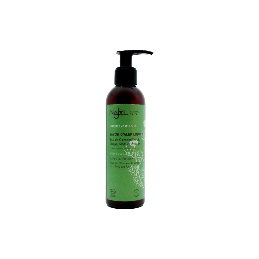 Le Savon d'Alep liquide ambre et oud de NAJEL allie la douceur traditionnelle du savon d'Alep à un parfum sophistiqué d'ambre et de oud. Sa formule liquide offre un nettoyage délicat tout en laissant sur la peau une fragrance chaleureuse et élégante. Adapté à tous les types de peau, ce savon procure une sensation de propreté tout en respectant l'hydratation naturelle et l'équilibre cutané.