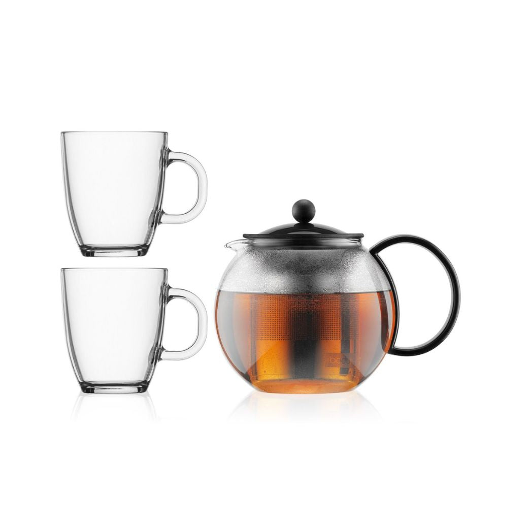 Assam Set Théière à Piston Filtre Inox 1L avec 2 Mugs en Verre 0.35L - BODUM